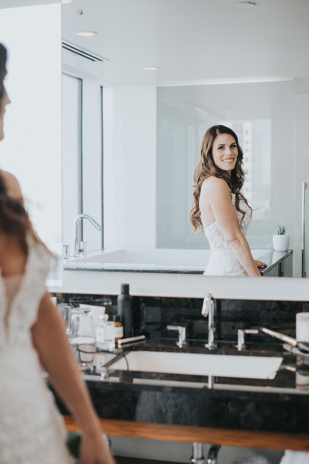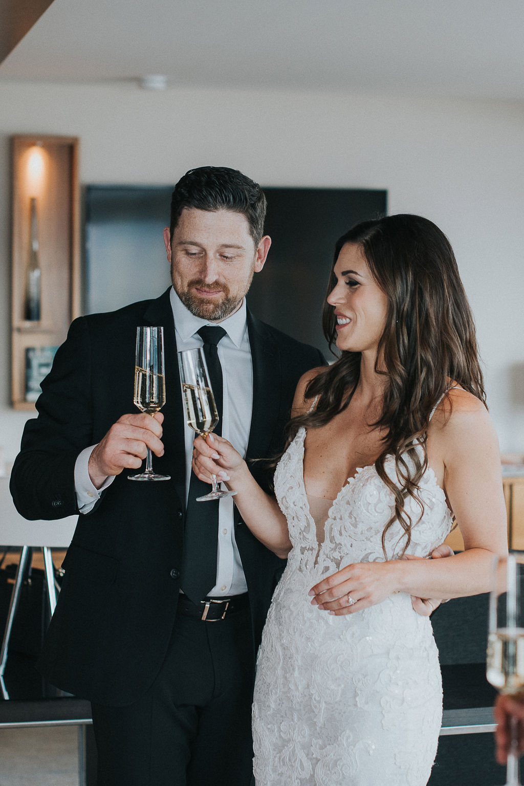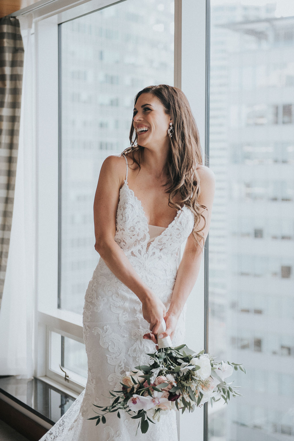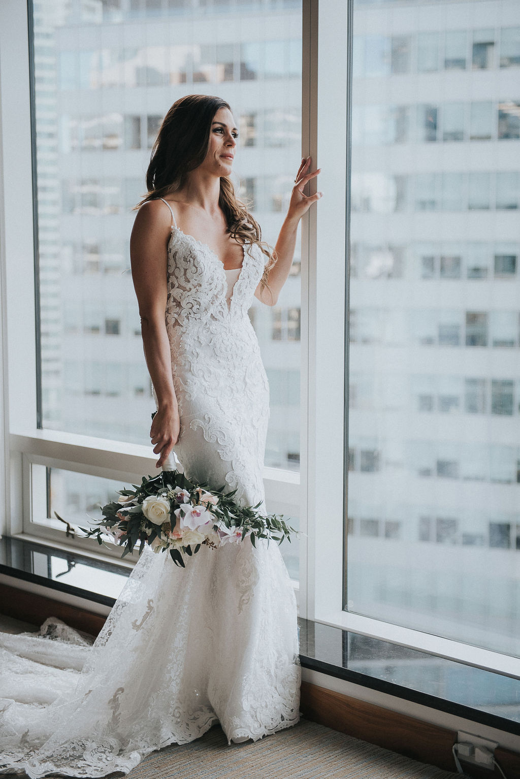 We are excited to share a unique elopement for our couple, Joey and Jason on the blog today! They kept things super simple and intimate with an elopement style ceremony in their hotel room at the Fairmont Pacific Rim hotel room. Followed by dinner downstairs at Giovane Cafe with their closest friends and family.