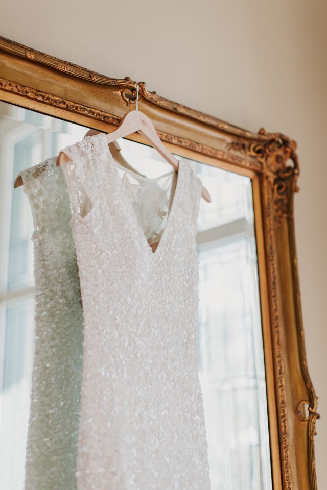 The bride was stunning in a cap sleeve beaded gown, while her bridesmaids were a sophisticated vision in all black.