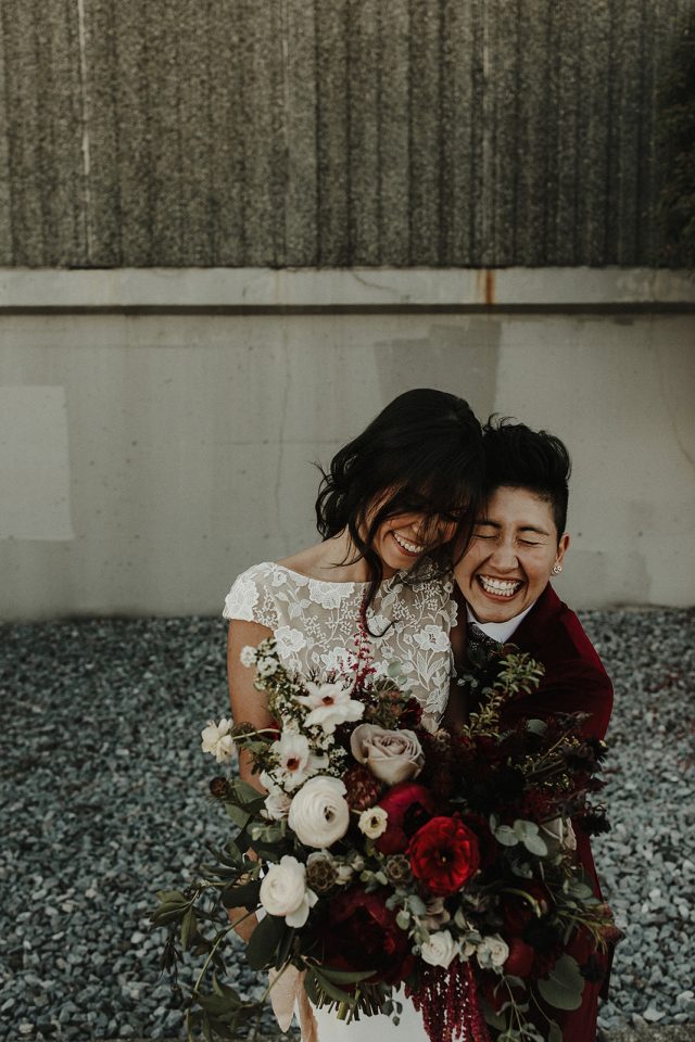 As we head into Fall, the colour palette of this wedding is very fitting with deep shades of maroon and ruby, found in the florals and bride Natasha’s gorgeous velvet suit. Helen is the owner of Thomas Hobbs Florist, who of course provided the beautiful flowers for the bouquets, boutonniere and arrangements.
