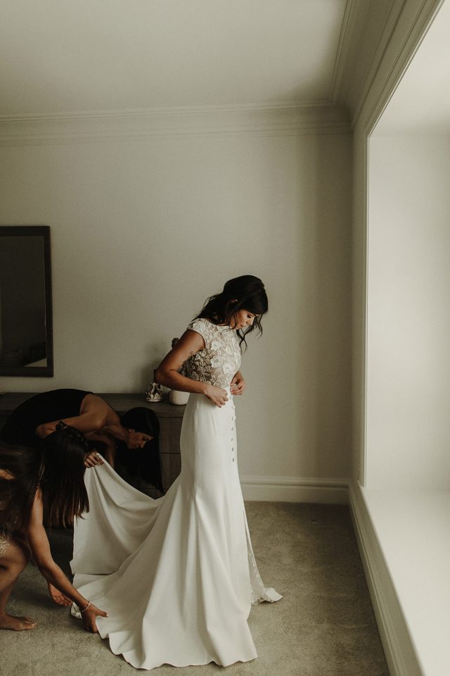 Union Bridal is where Helen found her lovely lacy dress. The buttons down the front are a cool detail you don’t see often! Keep reading to hear more about the look our makeup artist Andrea created for Helen.