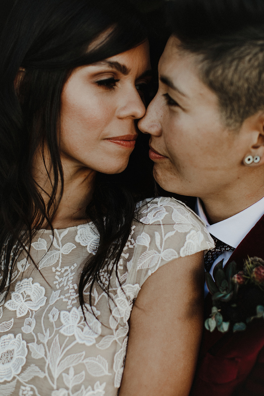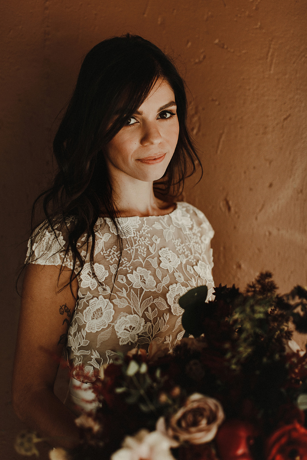 Union Bridal is where Helen found her lovely lacy dress. The buttons down the front are a cool detail you don’t see often! Keep reading to hear more about the look our makeup artist Andrea created for Helen.