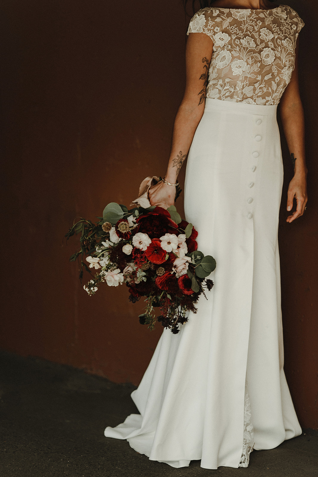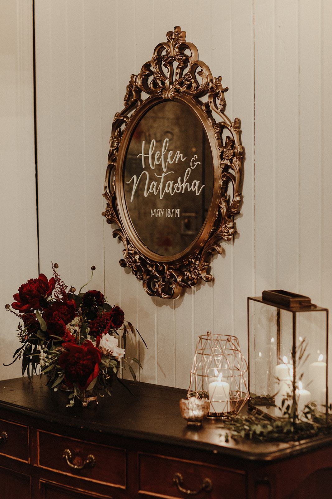 As we head into Fall, the colour palette of this wedding is very fitting with deep shades of maroon and ruby, found in the florals and bride Natasha’s gorgeous velvet suit. Helen is the owner of Thomas Hobbs Florist, who of course provided the beautiful flowers for the bouquets, boutonniere and arrangements.
