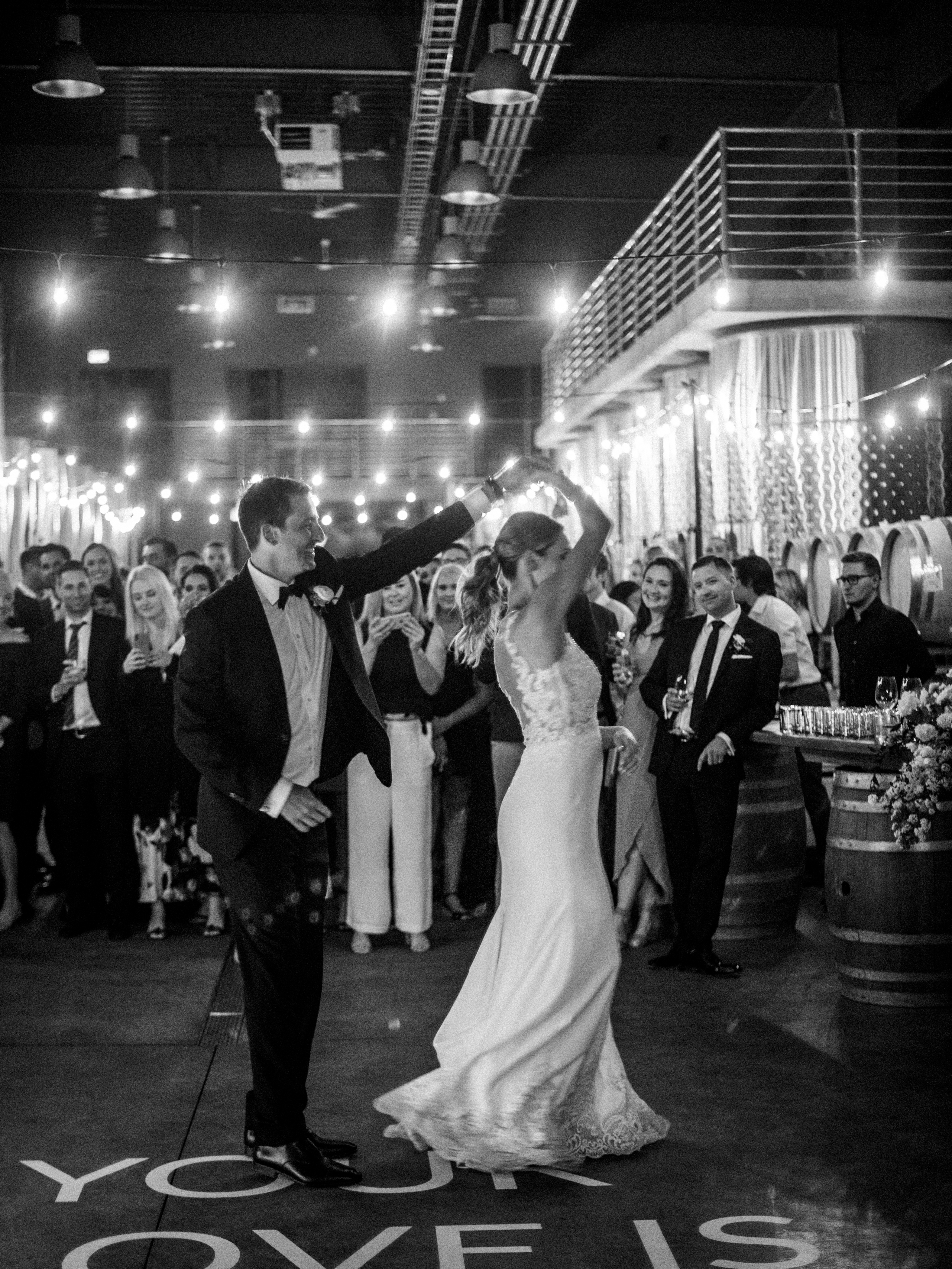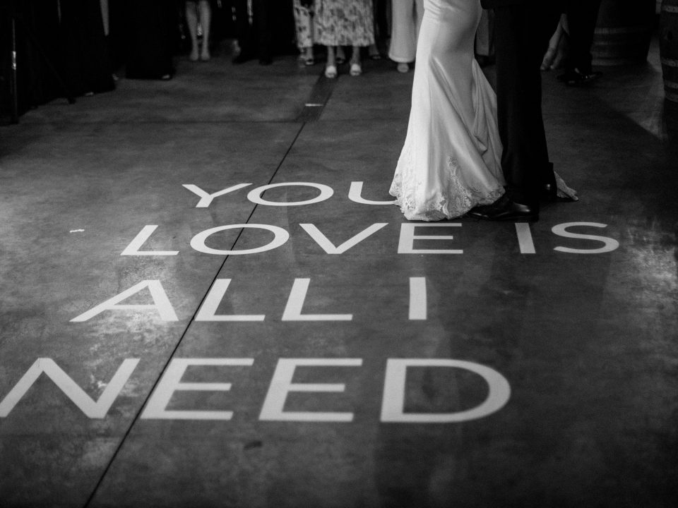 I had Urban Walls create a floor decal that said, “Your Love Is All I Need” as an extra surprise for Colin from our first dance song.