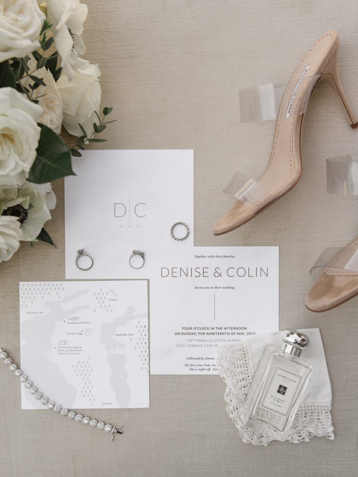 We started the day getting ready at Sparkling Hill Resort & Spa, where I had spent the evening with my sisters enjoying some pre-wedding relaxation. Hair and makeup was done by my team Sarah, Christina, Jenny and good friend Caitlin. I couldn’t have asked for a better beauty squad! I loved my modern wedding shoes from Manolo Blahnik, along with my Pronovias Dress I was so excited to wear from Blush Bridal. Colin decided on a black Giorgio Armani suit from Harry Rosen.