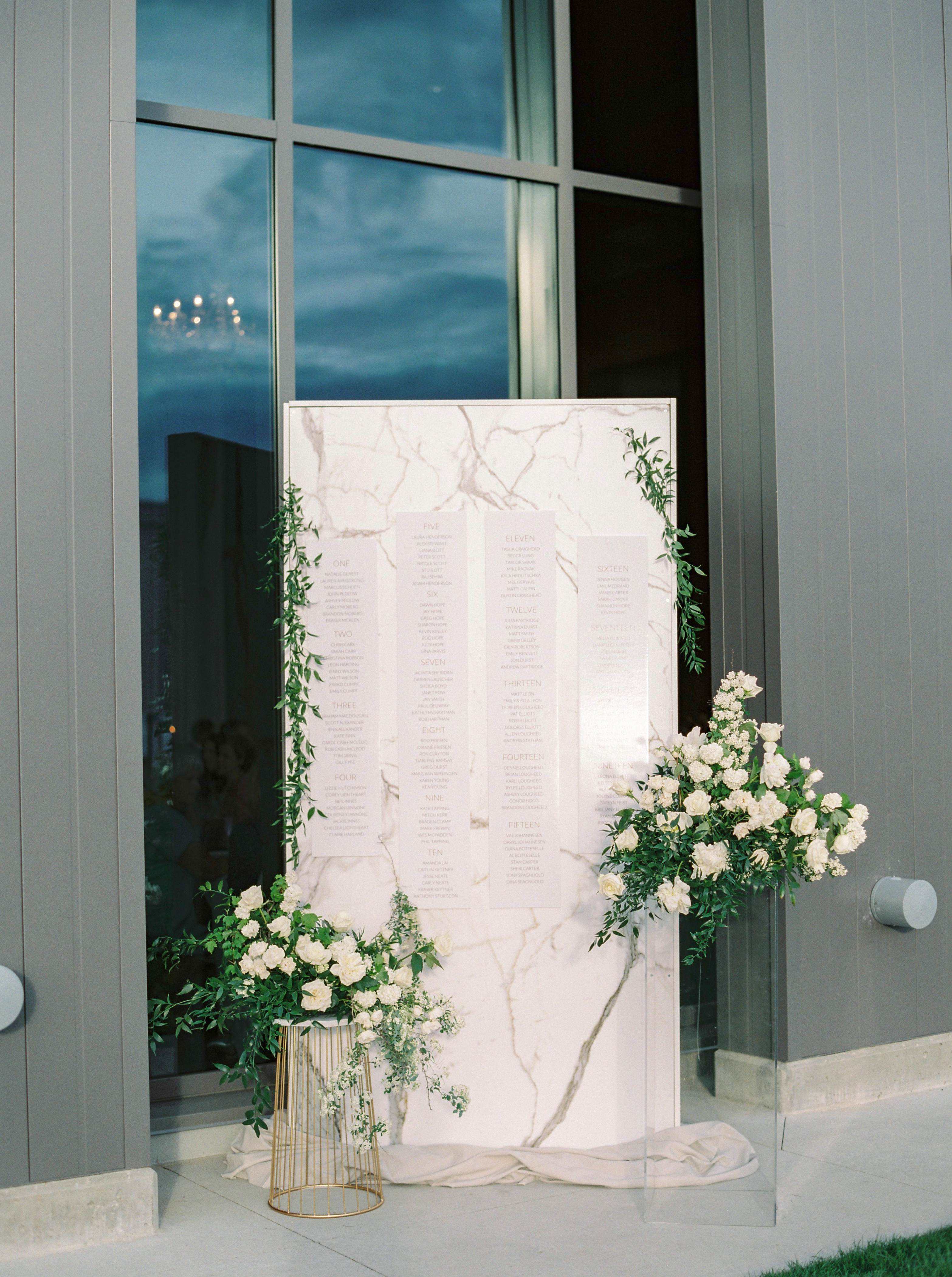 I decided to have ghost chairs instead of the vineyard chairs on the infinity pad creating that polished, clean style I was envisioning. We had a marble runner down the middle of the aisle which I loved as well!