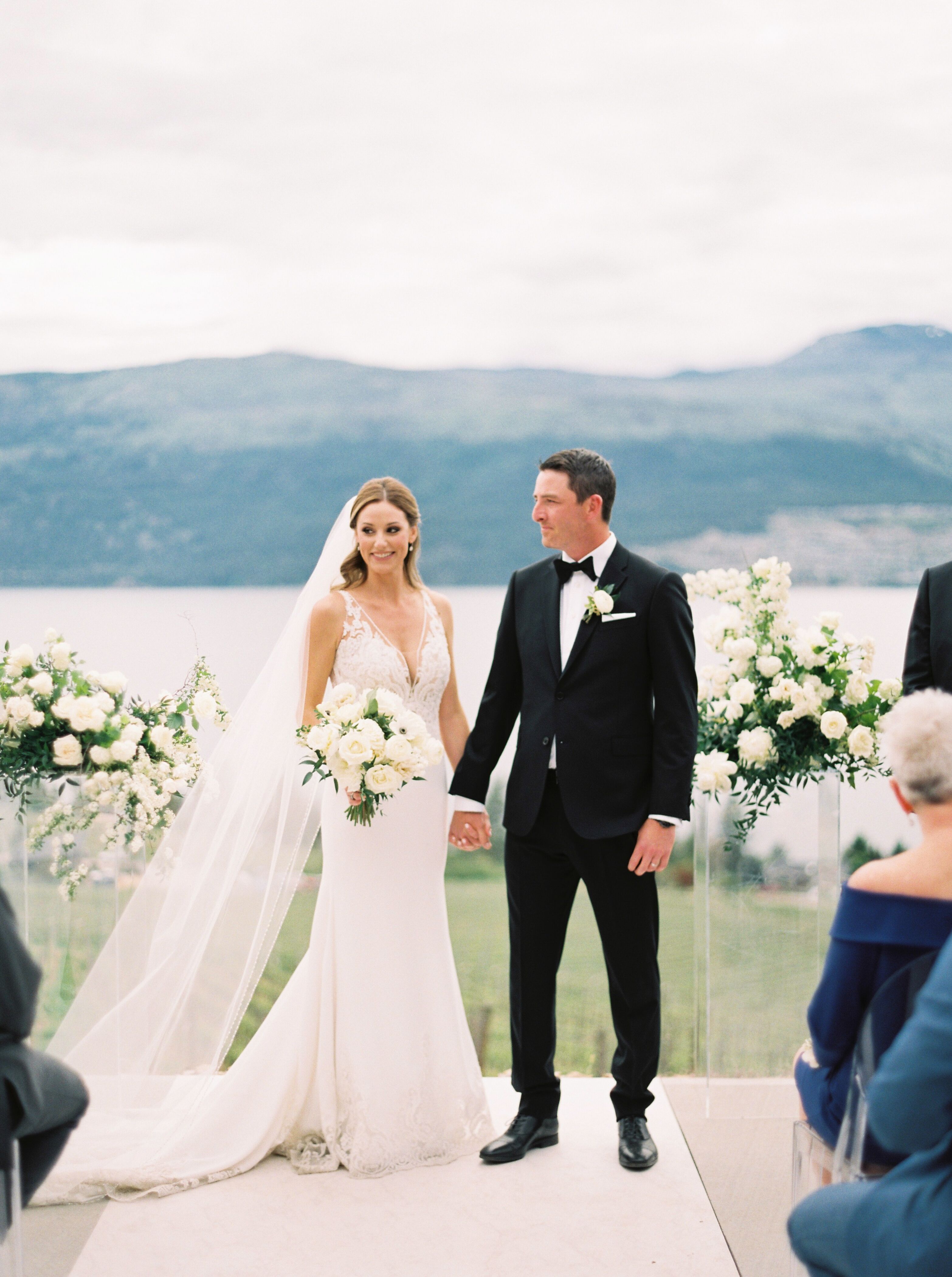 The ceremony was held up at the top of the Infinity Pad. This overlooks the entire lake and the views are seriously SO stunning. We had Greg Neufeld of Musos playing Unchained Melody as my dad walked me down the aisle. Our ceremony wouldn’t be complete without our dog, Stella. It was so much fun having her walk down the aisle and be there with us.