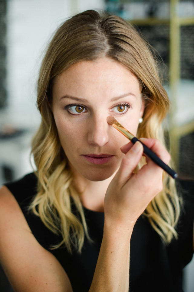 The key to using powder under the eyes is to use very little! You want to avoid the under eye from looking dry or cakey (which would mean you’ve applied too much powder).