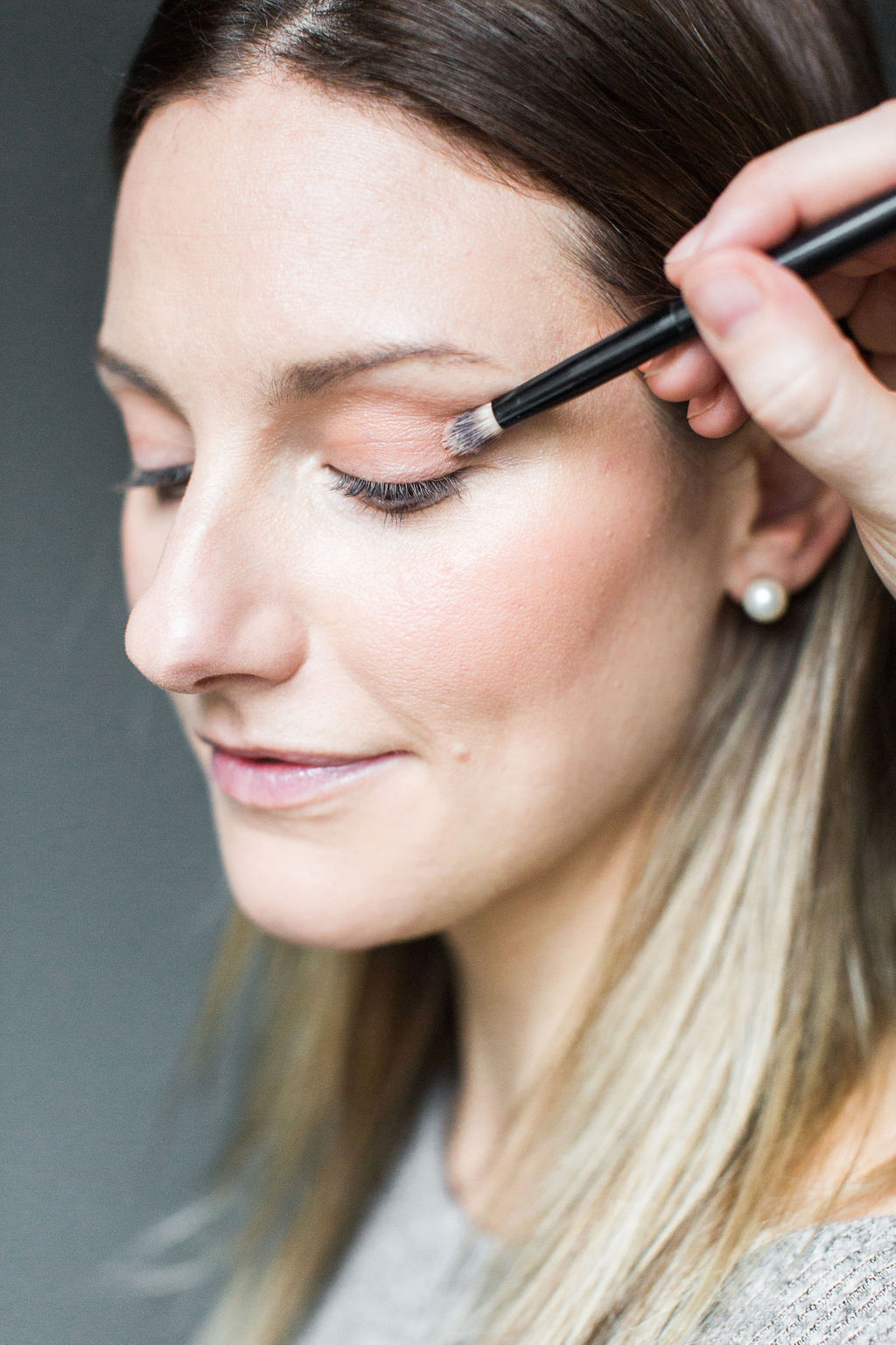As we mentioned in Step 3, we used Stila Convertible Colour in Camellia all over the lid up to the crease. Apply with fingers and then with a fluffy duo fiber synthetic brush, buff the product into the lids and blend the edges.