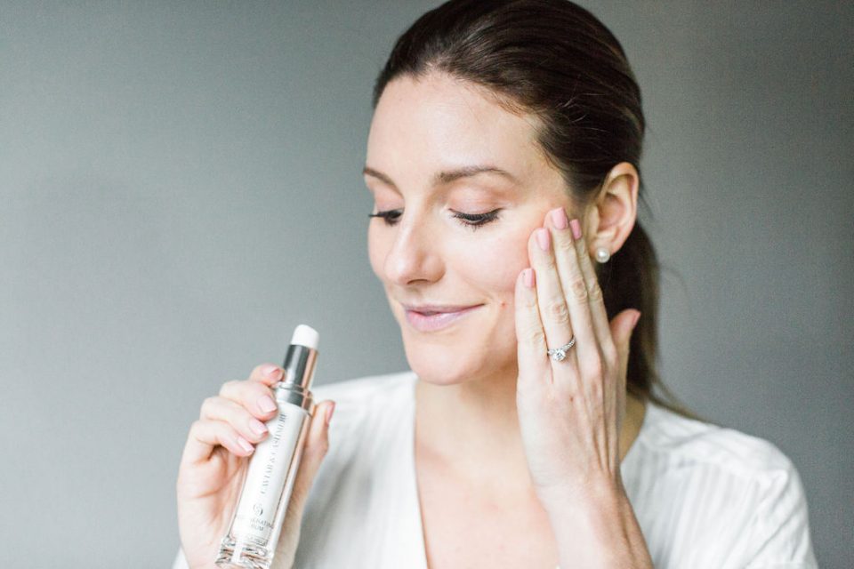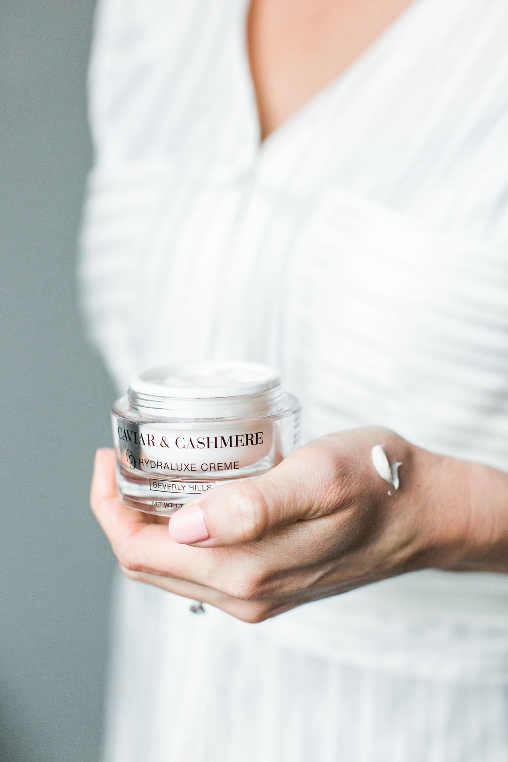 Prep the skin with Caviar and Cashmere Regenerating Serum followed by the Hydra Luxe Cream for beautifully hydrated skin. This creates a nice base for the makeup to go onto and will add to the overall glow.