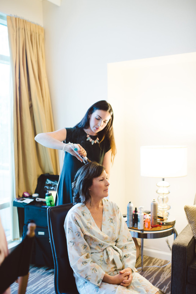 Jackie definitely nailed the vision and style she was going for! From the periwinkle bridesmaid dresses, to the beautiful floral arrangements (shades of ivory, soft pink and eggplant) to her elegant wedding dress, everything looked stunning! We had such a lovely time creating the different looks everyone was envisioning.