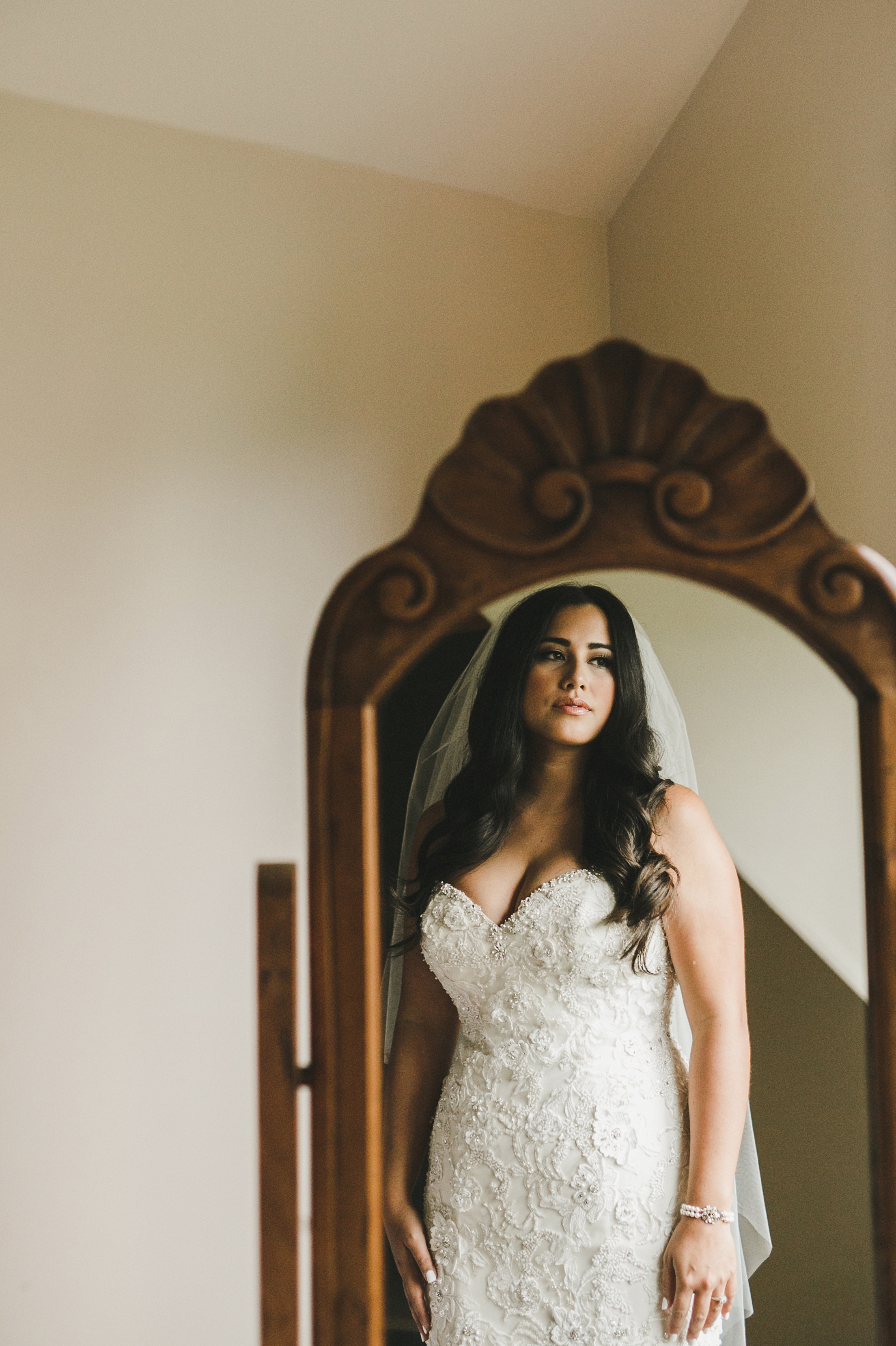 My last step was finishing with a soft pink/bronzed blush and a nude pink lip for the ceremony. Alicia then switched to a bright red lip for dinner and dancing in the evening!
