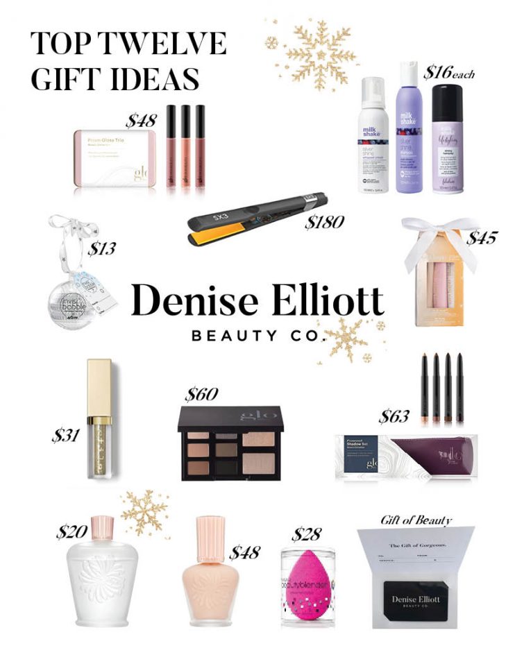 - Denise Elliott Beauty Co. Gift Card – Still not sure on what to get that special someone? You cant go wrong with a day at the salon! Gift cards available for makeup and hair services, or any dollar amount 🙂