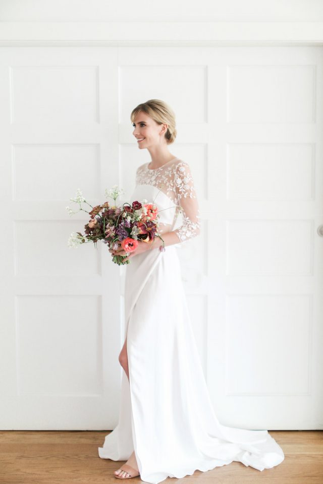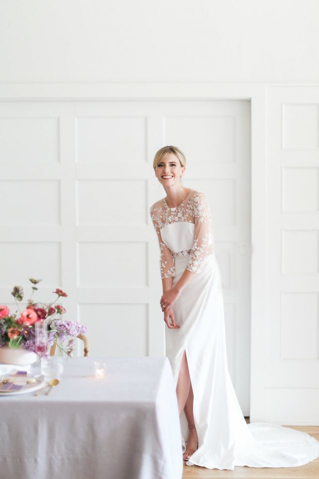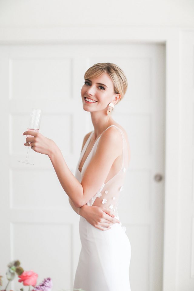 For this shoot, we wanted to highlight the minimal and delicate lace detailing on these gowns provided by Union Bridal. Crisp and structured silhouettes were softened by dainty lace petals for a beautifully balanced dress!