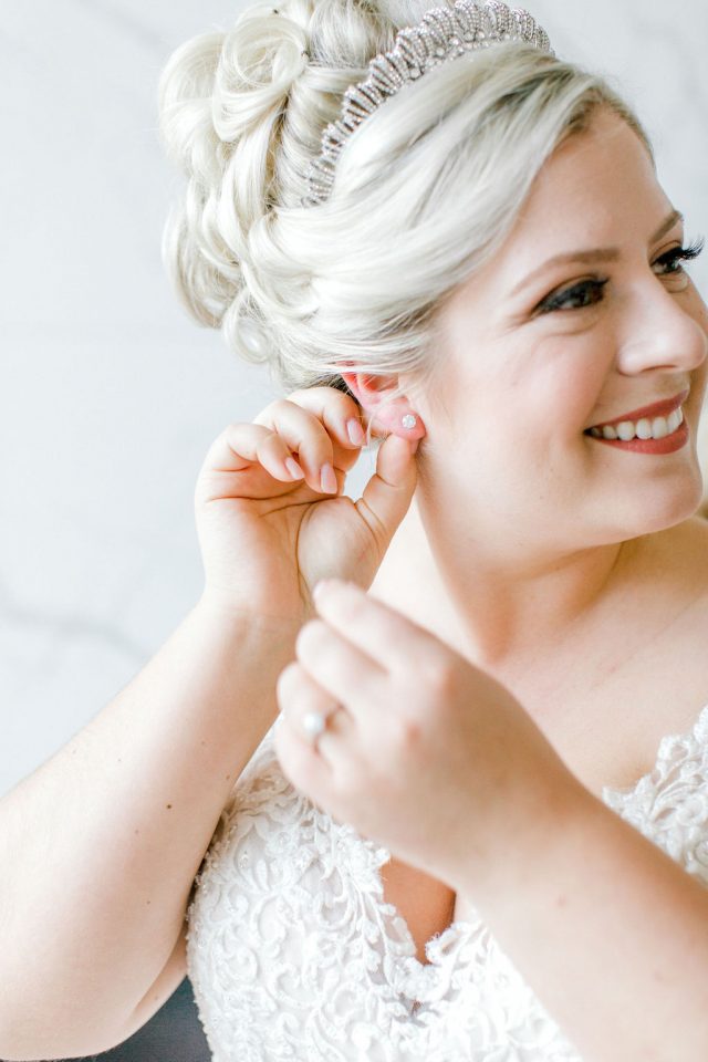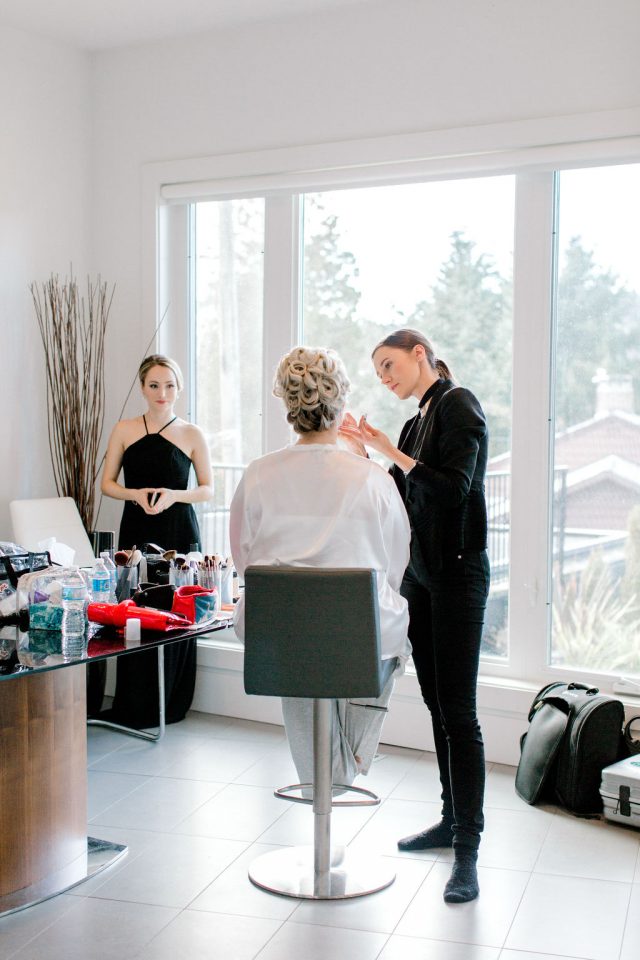 Marina’s peaches and cream complexion was perfected with a long wearing foundation and the perfect shade of pink was selected for her lips.