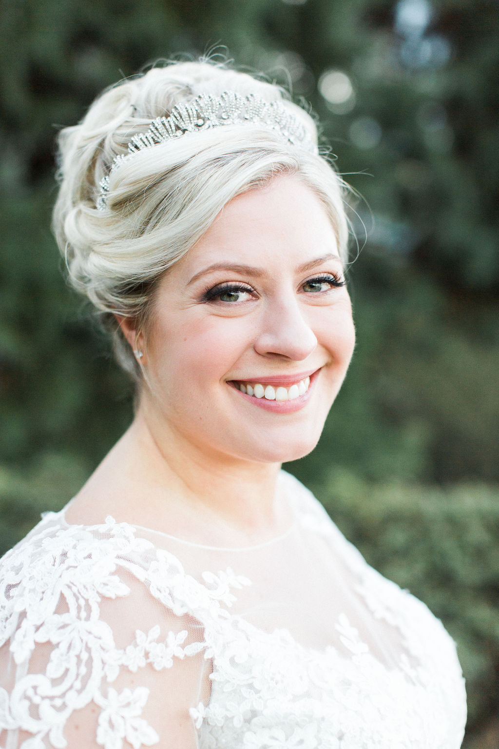 Marina’s peaches and cream complexion was perfected with a long wearing foundation and the perfect shade of pink was selected for her lips.