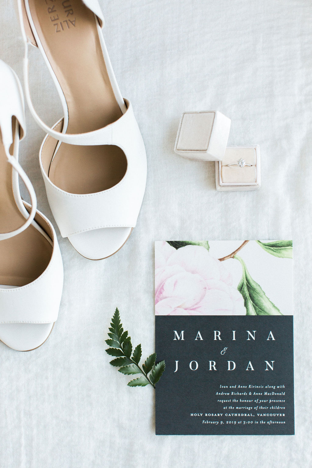 Friends and family gathered to witness M +J’s wedding vows at the beautiful Holy Rosary Cathedral,. We LOVE the royal wedding moment pictured above of Marina walking down the aisle wearing a show stopping cathedral length veil. Fresh Florals were created by Nicola Adam Floral.