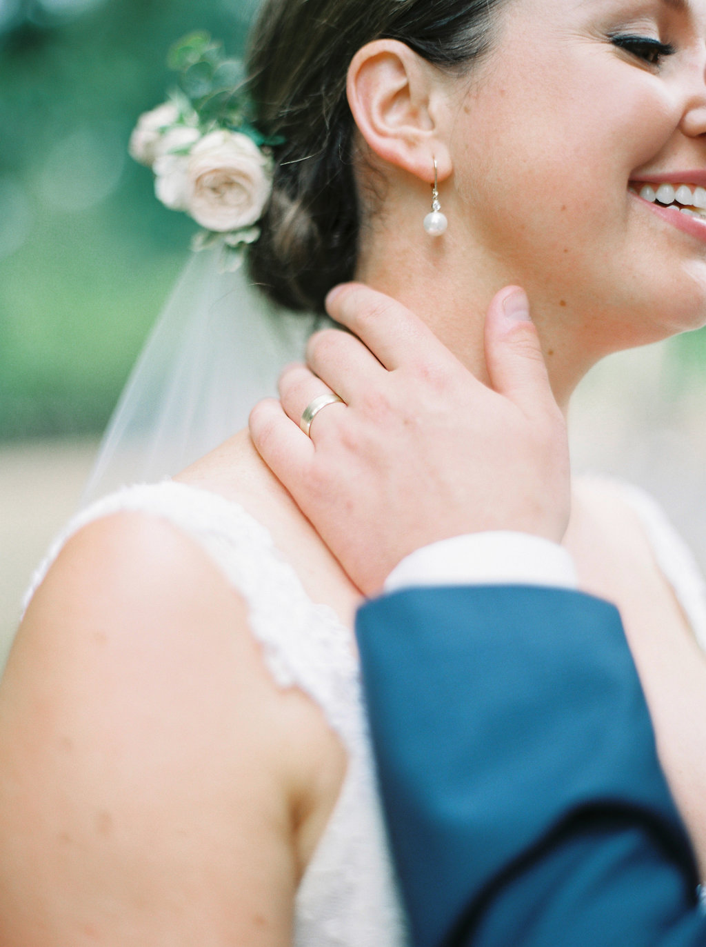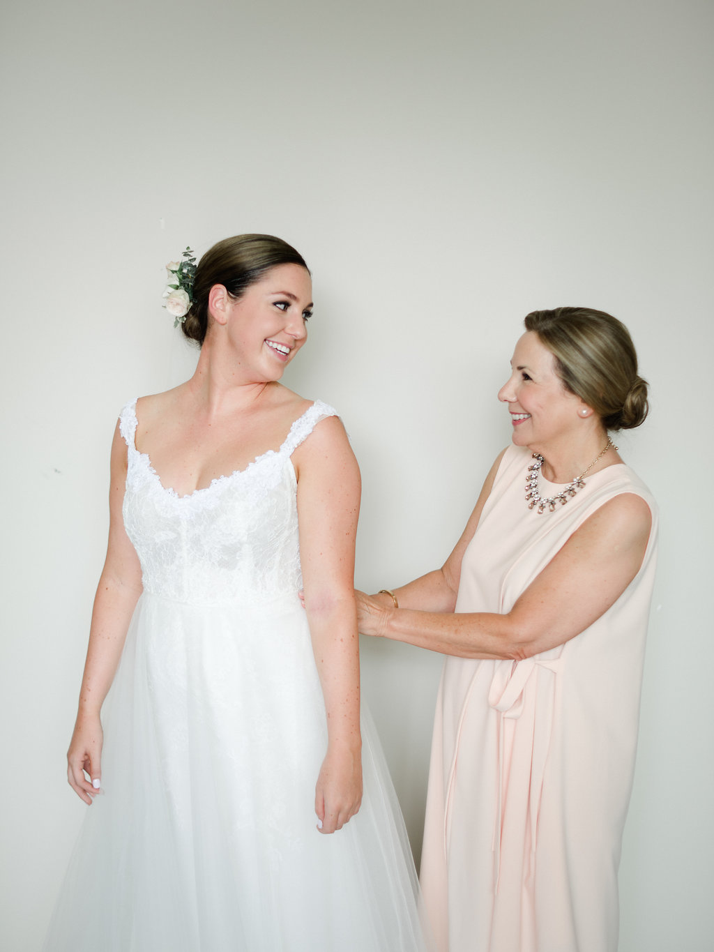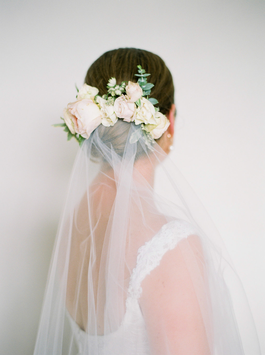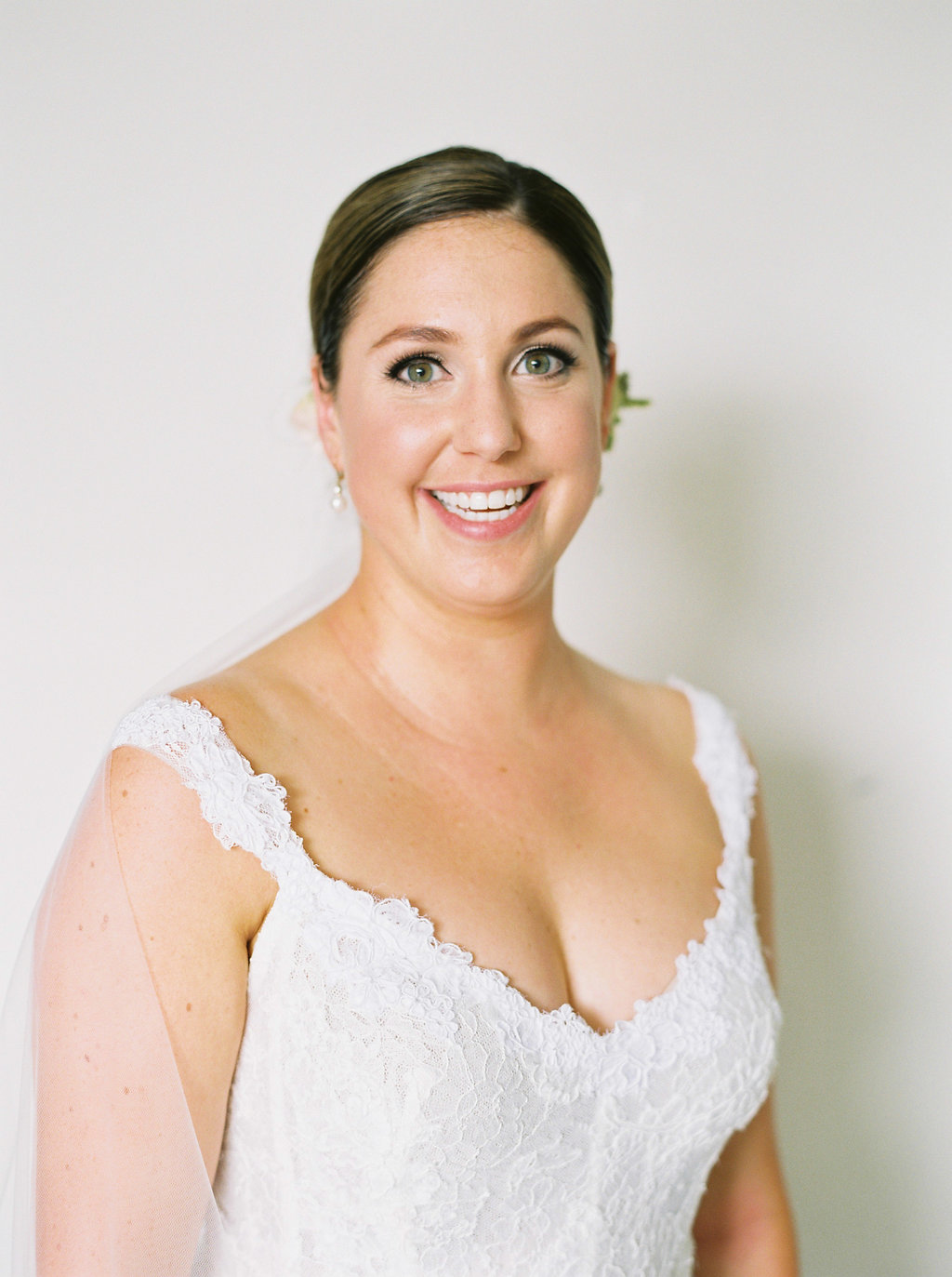 Our senior hair stylist Chris worked magic on A’s hair. It was definitely a hot summer day so it was crucial for A to have her hair off her face and neck. Chris created this classic low up do to compliment the flower piece created by Myrtle et Olive Florals!