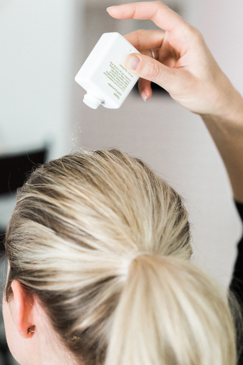 After you have loosely curled your hair, add Evo Haze Styling Powder to horizontal sections at the crown, back combing those sections moving towards the top of the head depending on how much volume you want. If you want your part showing, sprinkle the styling powder on the sides of your head in sections.