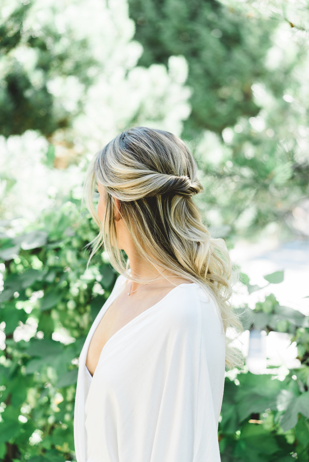 With soft curls and a half up style it brought out all the dimension in Kaylen’s hair. Sarah nailed Kaylen’s look! A light beige shadow on the lid with a bold liner and lashes paired perfectly with a soft pink cheek and lip!